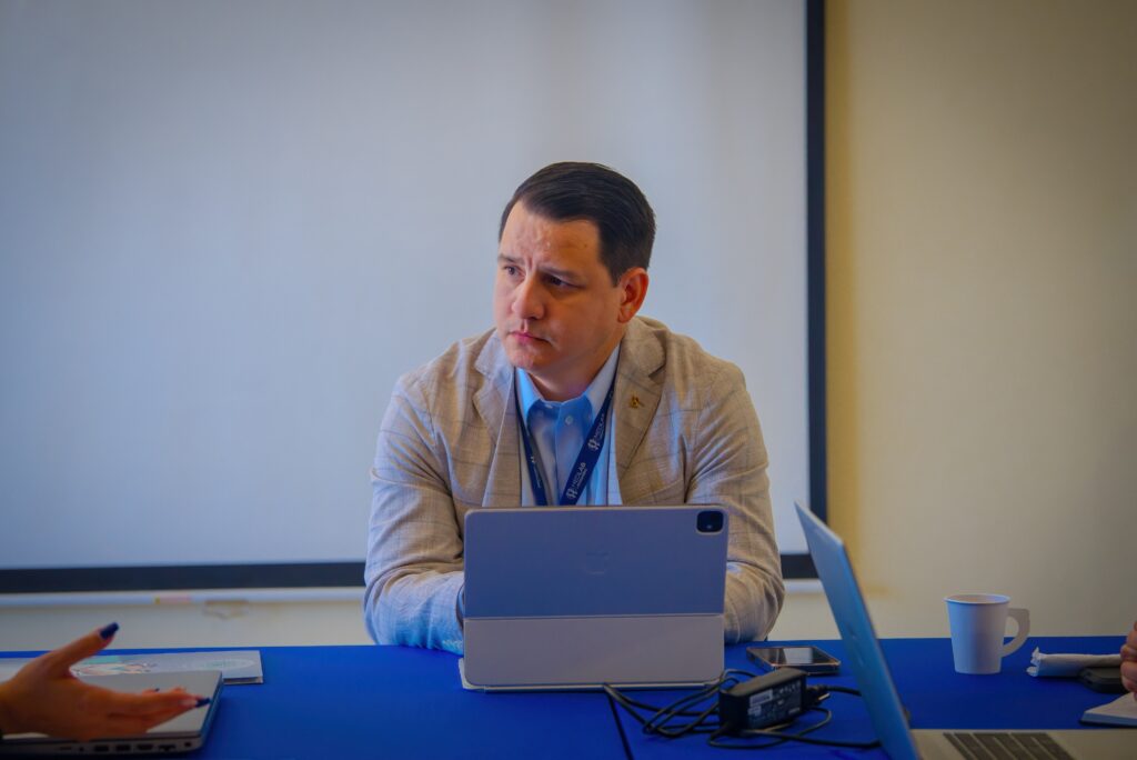 Como parti di e bishita, a cumpli cu un reunion fructifero entre representante di CARPHA Dr. SueMin Nathaniel, representante di DVG Anselmo Mathew, hunto cu representante di Medlab Aruba, esta Director di Laboratorio Dr. Carlos Yagua Velasquez, Director di Operacion Ana Maria Verschuur, y Director di Calidad Anny Janssen.
